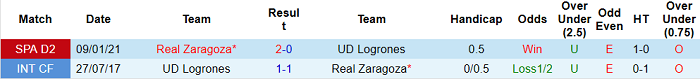 - Lịch sử đối đầu Logrones vs Zaragoza