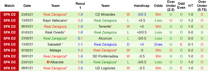 - Thống kê 10 trận gần nhất của Zaragoza