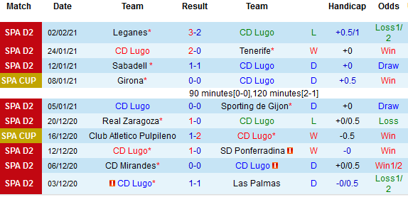 + Soi tỷ lệ kèo tài xỉu: Đã có tới 7 trận diễn ra trên sân của Lugo gần đây đều khép lại với tối đa 2 bàn thắng được ghi.