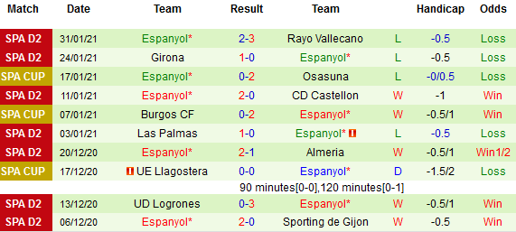 + Thống kê 10 trận gần nhất của Espanyol