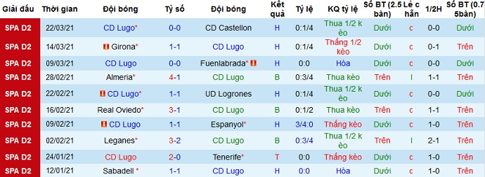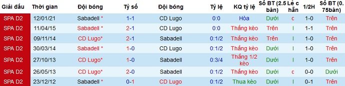 Đáng nói là trong cả 3 lần đối đầu gần nhất khi Lugo được thi đấu trên sân nhà họ đều giành chiến thắng. Cộng với thành tích du đấu khá tệ của Sabadell trong các trận vừa qua nên chọn cửa trên ở trận đấu này là có cơ sở và hoàn toàn hợp lý.