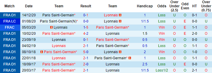 Lần gần nhất làm khách trên sân của Lyon, PSG thắng tưng bừng 3-0. Tuy nhiên trước giờ bóng lăn trận đấu đó, PSG chấp -1 theo kèo châu Á. Lần tái đấu sắp tới PSG vẫn xếp cửa trên nhưng kèo chấp chỉ dừng lại ở mức -1/4.