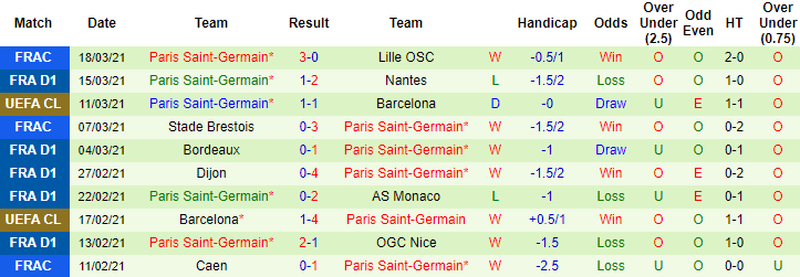 + Thống kê 10 trận gần nhất của PSG