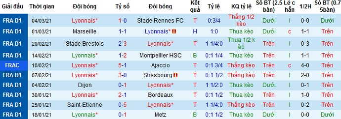 + Thống kê 10 trận gần nhất của Lyon