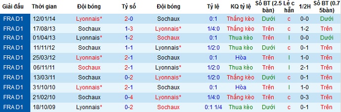 + Lịch sử đối đầu Lyon vs Sochaux