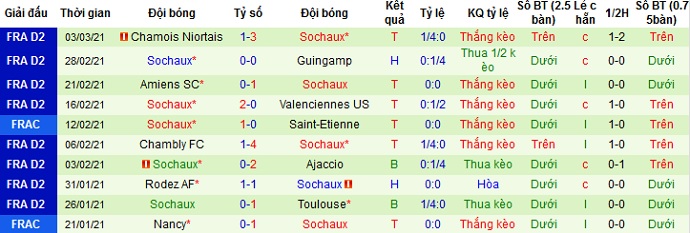+ Thống kê 10 trận gần nhất của Sochaux