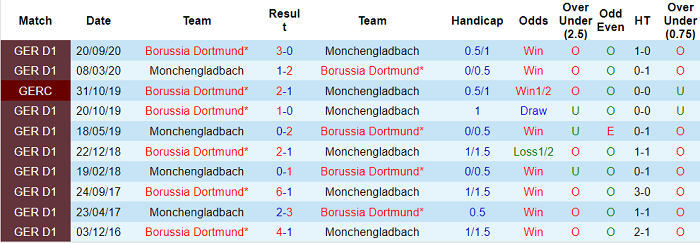 Phong độ và thống kê đối đầu M’gladbach - Dortmund gần đây