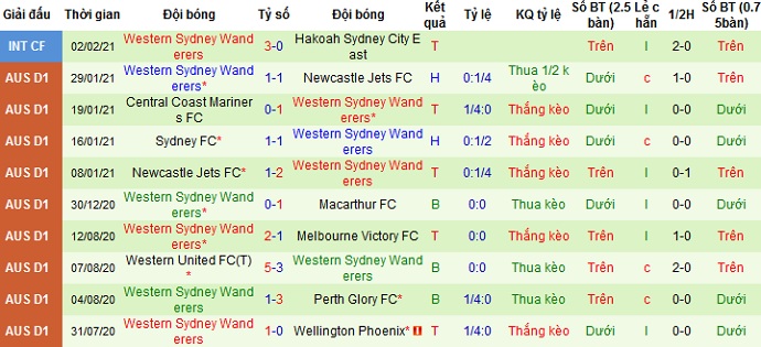 + Thống kê 10 trận gần nhất của Sydney Wanderers