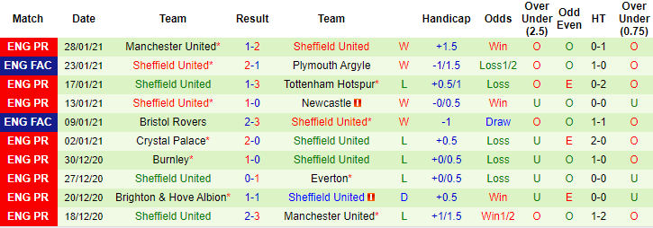 + Thống kê 10 trận gần nhất của Sheffield United