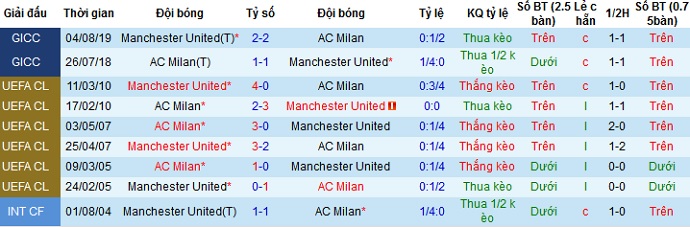 + Lịch sử đối đầu Manchester United vs AC Milan
