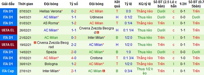 Trong khi đó AC Milan với đội hình bị sứt mẻ vì chấn thương quá nhiều nên cũng có phong độ không tốt. Ở 5 trận gần nhất đội bóng chỉ thắng 2, hòa 2 và để thua 1. Thành tích sân khách của đội bóng cũng chẳng tốt hơn là bao với 3 trận thắng, 1 trận hòa và 1 trận thua ở 5 lần du đấu gần nhất.