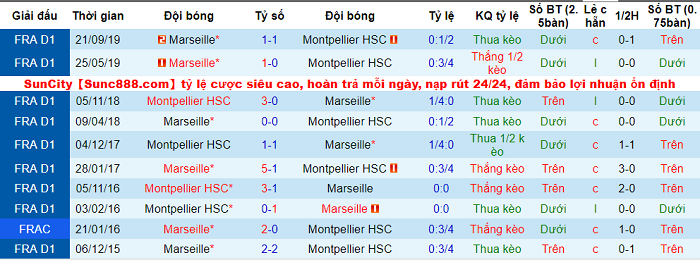 4/7 trận sân nhà của Marseille tại Ligue 1 mùa này khép lại với tổng số bàn thắng từ 2 trở xuống. Marseille và Montpellier vì thế khó chinh phục mốc Tài Xỉu là 2 1/4.