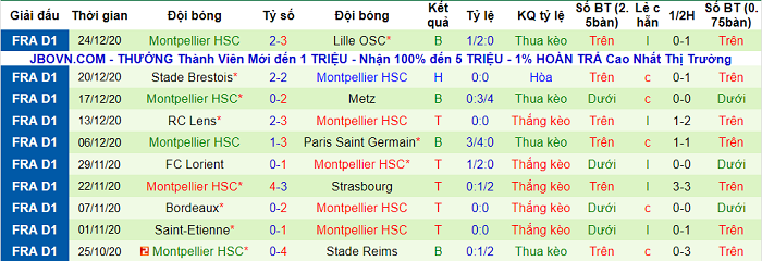 - Thống kê 10 trận gần nhất của Montpellier