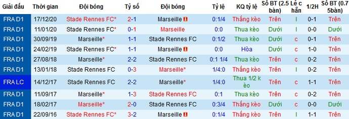 Tỷ lệ kèo Marseille vs Rennes