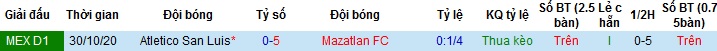 Tỷ lệ kèo Mazatlán FC vs San Luis