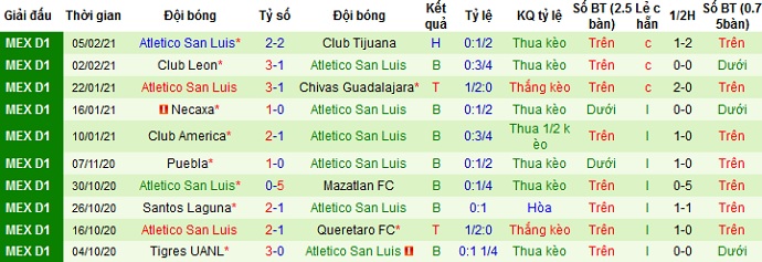 + Thống kê 10 trận gần nhất của San Luis