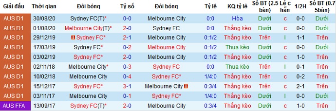 Tuy nhiên trong 4 lần đối đầu gần nhất khi Melbourne City được thi đấu trên sân nhà họ chỉ giành được chiến thắng 1 lần duy nhất, để thua trong cả 3 trận còn lại. Trong khi đó Sydney FC vẫn có phong độ sân khách khá tốt nên chọn cửa dưới ở trận đấu này có lẽ là hợp lý.