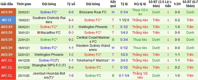 + Thống kê 10 trận gần nhất của Sydney FC