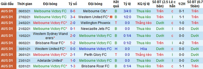 + Thống kê 10 trận gần nhất của Melbourne Victory