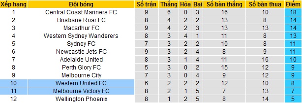 Bảng xếp hạng giải VĐQG Úc vòng 9