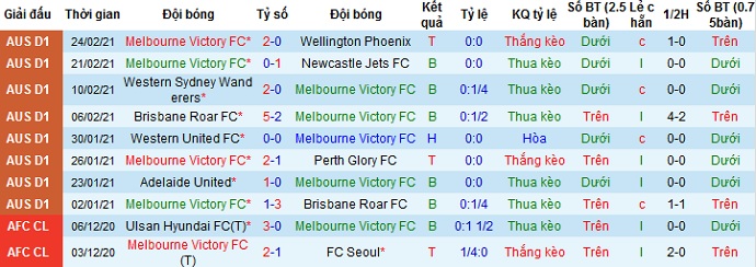 + Thống kê 10 trận gần nhất của Melbourne Victory