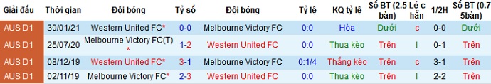Trong 4 lần đối đầu gần nhất giữa hai đội Western United vẫn đang có thành tích tốt hơn khi có được 3 trận thắng và 1 trận hòa. Thế nhưng ở mùa giải này cách đây chưa đầy 1 tháng trên sân nhà Western United cũng chỉ có được trận hòa 0-0 với Melbourne Victory. Bởi vậy với phong độ rất tệ của Western United trên sân khách, chọn cửa dưới có lẽ vẫn là hợp lý.
