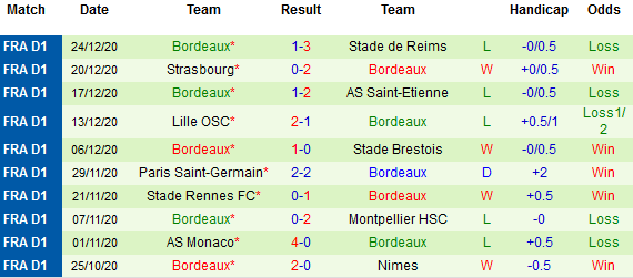 Nhìn vào lịch sử đối đầu gần đây, Bordeaux chiếm ưu thế gần như tuyệt đối. Cụ thể, trong 9 lần gặp nhau vừa qua, đại diện xứ rượu vang đã có tới 7 trận thắng và chỉ 2 lần chia điểm.