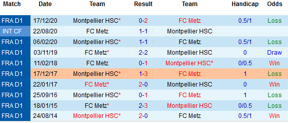 + Soi tỷ lệ kèo châu Á: Trên sàn giao dịch châu Á là thành tích đáng tin nhất giải mà Metz đang có với 63.64% số trận. Trong khi đó, Montpellier mới tích lũy được 40.91% số trận thắng kèo.