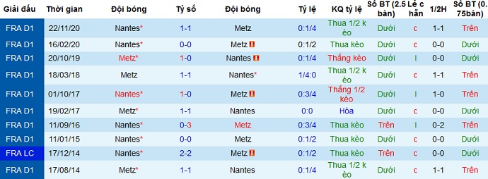 + Lịch sử đối đầu Metz vs Nantes