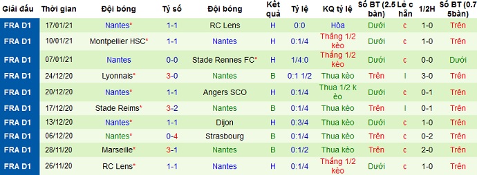 + Thống kê 10 trận gần nhất của Nantes