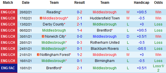 + Thống kê 10 trận gần nhất của Middlesbrough