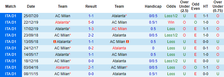 + Lịch sử đối đầu Milan vs Atalanta