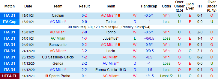 + Thống kê 10 trận gần nhất của Milan