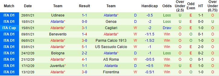 + Thống kê 10 trận gần nhất của Atalanta