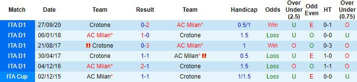 + Lịch sử đối đầu Milan vs Crotone