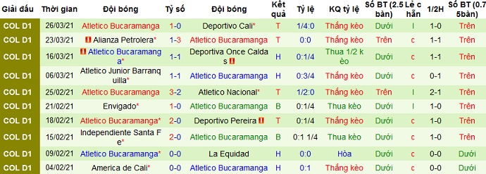 Đáng nói là đội bóng đang bất bại ở 5 trận gần nhất với 3 trận thắng và 2 trận hòa. Tuy nhiên trên sân khách Bucaramanga chỉ có được 1 trận thắng, 2 trận hòa và để thua 2 trận trong 5 lần du đấu gần đây.