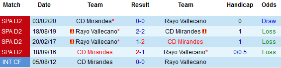 + Lịch sử đối đầu Mirandes vs Vallecano