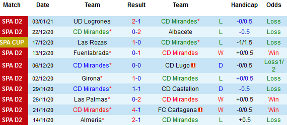 Mirandes bất bại trong cả 5 lần gặp nhau gần nhất nhưng lúc này đội chủ nhà đang trở nên lép vế trông thấy về chuyên môn. Tình hình không được cải thiện nhiều khi đội chủ nhà chỉ có 27 điểm sau 20 trận đã đấu và đã tụt xuống đứng thứ 13 trên bảng điểm.