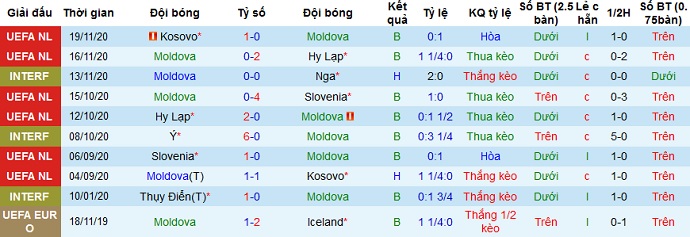 Ở 5 trận gần nhất diễn ra hồi cuối năm ngoái, Moldova chỉ có được 1 trận hòa và để thua ở cả 4 trận còn lại. Tuy nhiên trận hòa duy nhất của đội bóng chỉ là trận đấu giao hữu với ĐT Nga và hai đội bất phân thắng bại khi không có bàn thắng nào được ghi.
