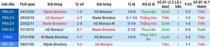 + Lịch sử đối đầu Monaco vs Brest
