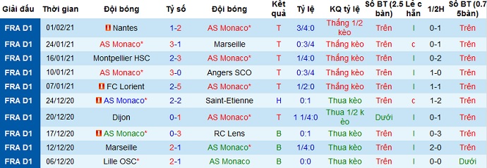 Từ đầu năm mới đến nay, Monaco đang thể hiện một bộ mặt khác hẳn khi toàn thắng ở cả 5 trận đã đấu. Trên sân nhà ở 5 trận đấu gần nhất Monaco cũng có được 3 trận thắng, 1 trận hòa và 1 trận thua.