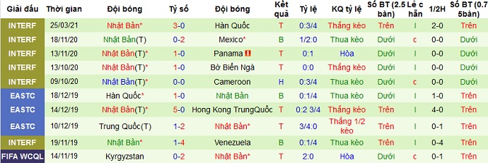 + Thống kê 10 trận gần nhất của Nhật Bản
