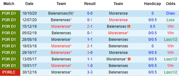 Nếu như Moreirense thắng 2, hòa 1 ở 4 vòng vừa qua thì Belenenses cũng bất bại 4 trận gần đây với 1 chiến thắng cùng 3 trận hòa. Nhưng Moreirense lại tỏ ra nhỉnh hơn ở phương diện đối đầu với việc thắng 3, hòa 1 trong 4 lần chạm trán mới nhất giữa đôi bên.
