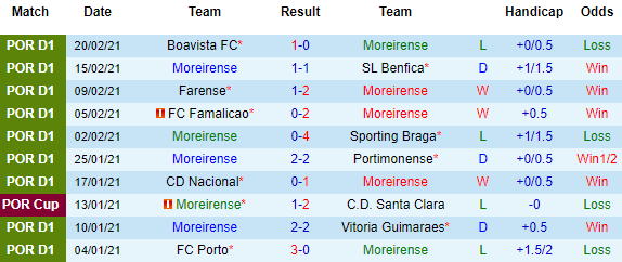 + Thống kê 10 trận gần nhất của Moreirense