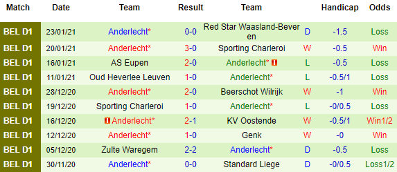 + Thống kê 10 trận gần nhất của Anderlecht