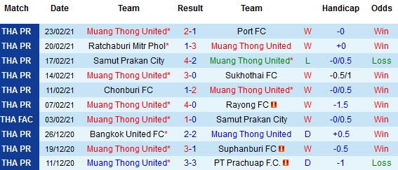 + Thống kê 10 trận gần nhất của Muang Thong