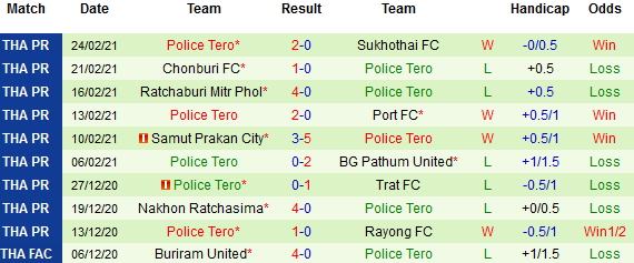 + Thống kê 10 trận gần nhất của Police Tero