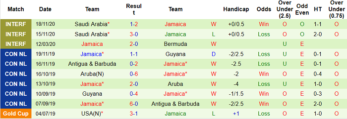 - Thống kê 10 trận gần nhất của Jamaica