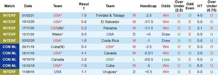 - Thống kê 10 trận gần nhất của Mỹ