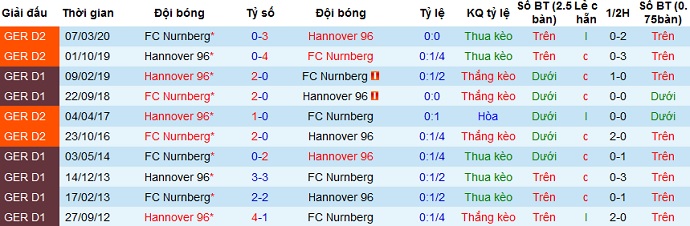 + Lịch sử đối đầu Nürnberg vs Hannover